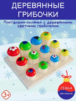 Сортер грибочки 12 шт, деревянная игрушка для малышей