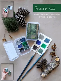 Палитра акварели ручной работы в зелёных и синих тонах. 9мл