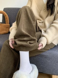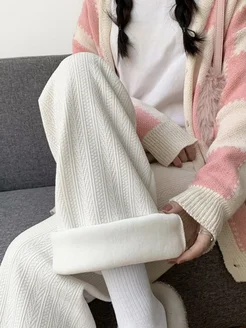 Брюки палаццо оверсайз вельвет с начесом теплые на резинке