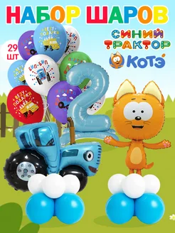 Набор воздушных шаров фигура Синий трактор и Котэ с цифрой 2