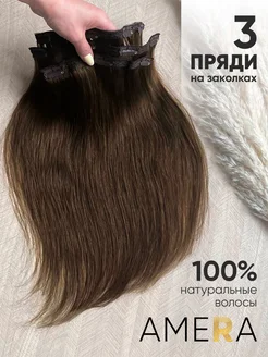 Волосы на заколках русые натуральные 3 пряди 40 см #10