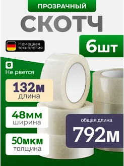Скотч прозрачный широкий 6 шт в комплекте 132 метра 48 мм