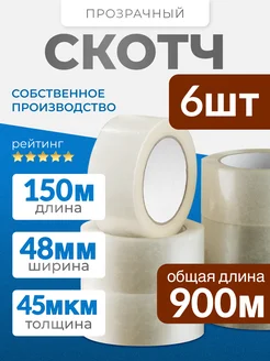 Скотч прозрачный широкий 6 шт в комплекте 150 метров 48 мм