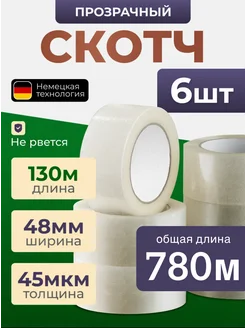 Скотч прозрачный широкий 6 шт. в комплекте 130 метров 48 мм