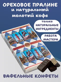 Шоколадные конфеты шоколадно-арахисовое пралине, вафли, кофе