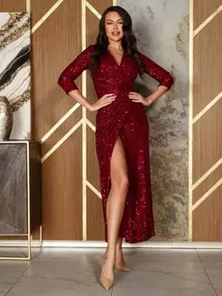 Платье на запах вечернее нарядное с пайетками на Новый Год