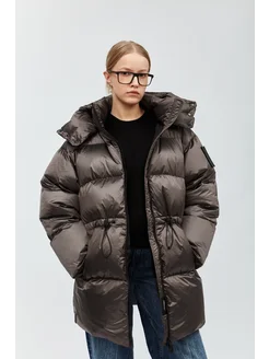 Пуховик зимний удлиненный с капюшоном оверсайз