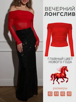 Лонгслив вечерний с открытыми плечами