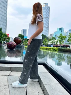 Джинсы прямые широкие со стразами