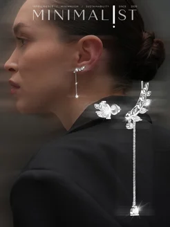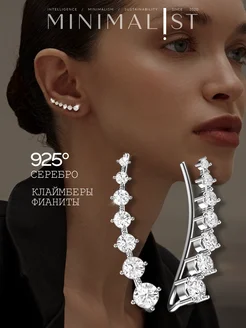 Серьги каффы серебро 925 асимметрия с цепочками с камнями