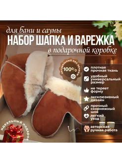 Подарочный набор "Шапка и рукавица для бани" из овчины