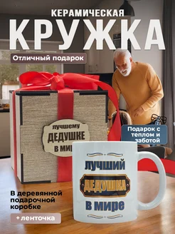 Кружка дедушке в подарочной деревянной коробке с бантом