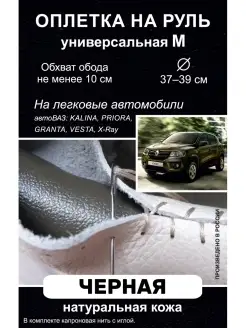 Оплетка на руль из натуральной кожи M (37-39 см.) черная