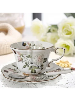 Чайная пара фарфор с ложкой