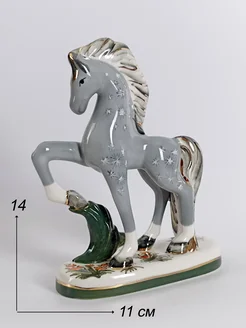 Фарфоровая елочная игрушка-колокольчик лошадка-качалка