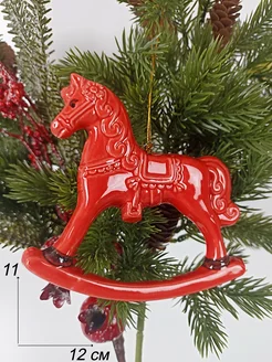 Фарфоровая елочная игрушка Красный Конь-качалка