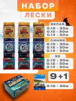 Леска зимняя набор из 9+1 шт TIAGRA, SHARK, KAMELEON