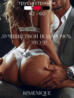 Трусы стринги кружевные бразильяна высокая посадка набор 3шт