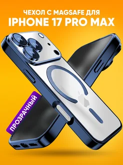Прозрачный чехол на iphone 17 Pro max с MagSafe синий