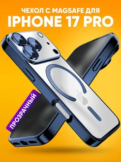 Прозрачный чехол на iphone 17 Pro с MagSafe синий