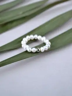 Кольцо с натуральным жемчугом на эластичной резинке