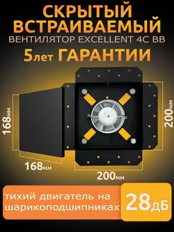 Вентилятор вытяжной скрытого монтажа с теневой решеткой