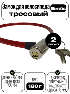 Замок велосипедный с ключом ВР-К02, 11х700 мм, красный