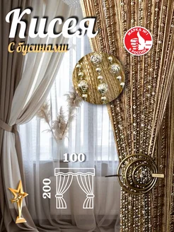 Готовая нитяная штора кисея с бусинами