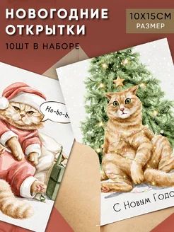 Открытка Новогодняя 10 шт Кошки