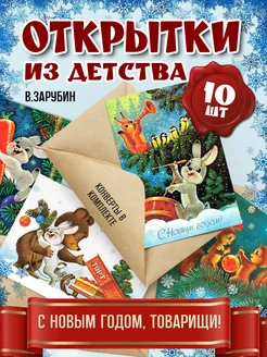 Новогодние открытки СССР 10х15 (10 открыток+10 конвертов)