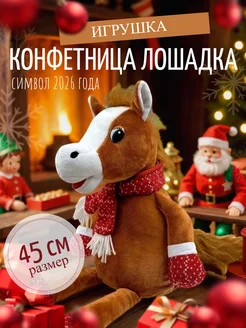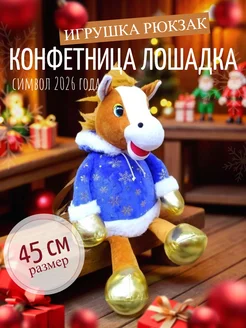 Мягкая игрушка конфетница лошадка 45 см рюкзак