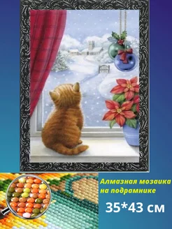 Алмазная мозаика на подрамнике Котёнок в окне 35х43см