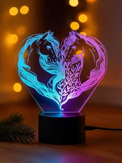 3D Ночник "Сердце из Лошадей" - Подарок на 2026 Год Лошади