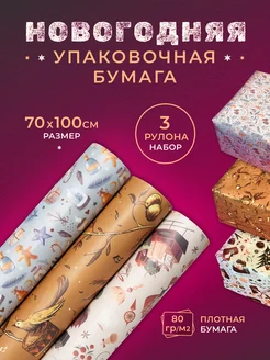 Упаковочная бумага новогодняя mix 3 набор 3 рулона