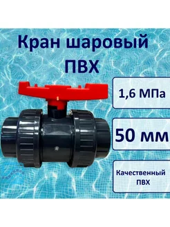 Кран шаровый ПВХ д.50 мм, 1,6 Мпа