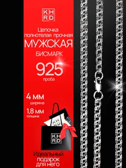 Мужская серебряная цепочка 4мм 925 пробы Бисмарк