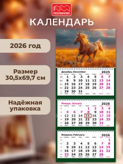 Календарь 2026 настенный трехблочный Огненная лошадь