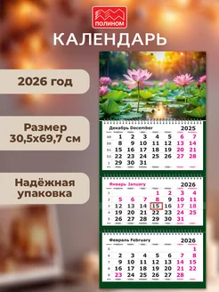 Календарь 2026 настенный трехблочный Розовые Лотосы