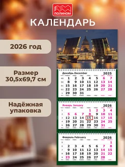Календарь 2026 настенный трехблочный Питер Разводные мосты