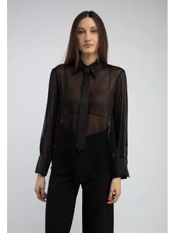 Рубашка блуза с галстуком женская полупрозрачная