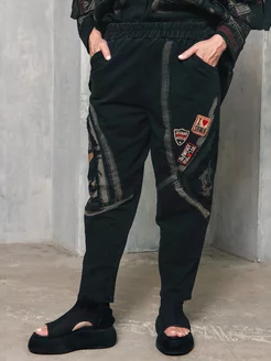Джинсовка оверсайз перфорированная с росписью и нашивками