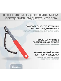 Ключ хлыст для снятия велосипедной кассеты или трещотки