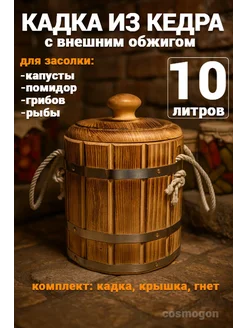 Кедровая кадка 10л для засолки с гнетом с внешним обжигом