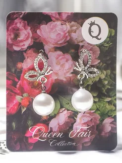 Серьги с жемчугом "Бабочка" с бусиной
