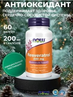 Ресвератрол 200 мг, нау фудс 60 капсул