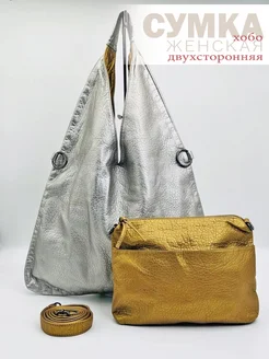 Сумка с клатчем 2 в 1 шоппер двухсторонняя хобо через плечо