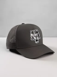 Кепка на осень с нашивкой тигра серая