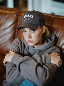 Кепка на осень с нашивкой хоккей серая