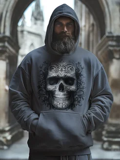 Худи свободного кроя с принтом череп