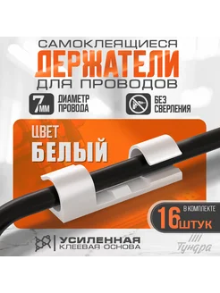 Крючки самоклеящиеся для гирлянд и проводов, 16 шт